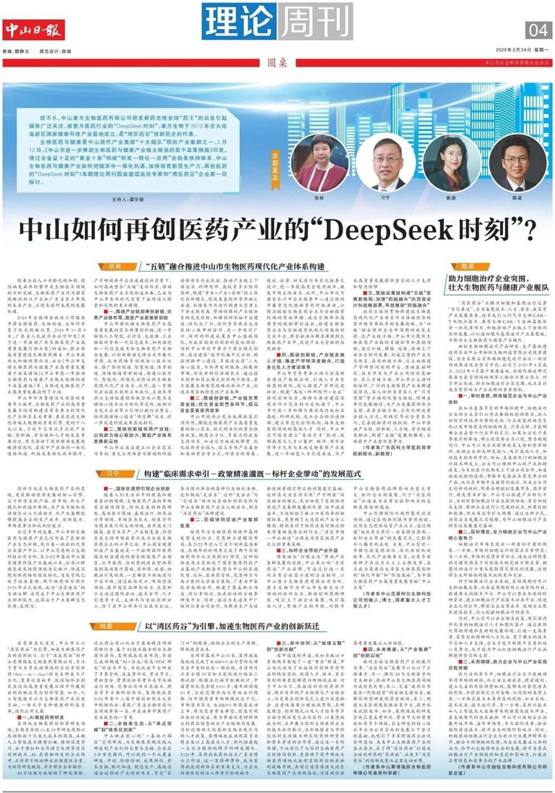 中山日報理論周刊:中山如何再創(chuàng)醫(yī)藥產(chǎn)業(yè)的“DeepSeek時刻”?
