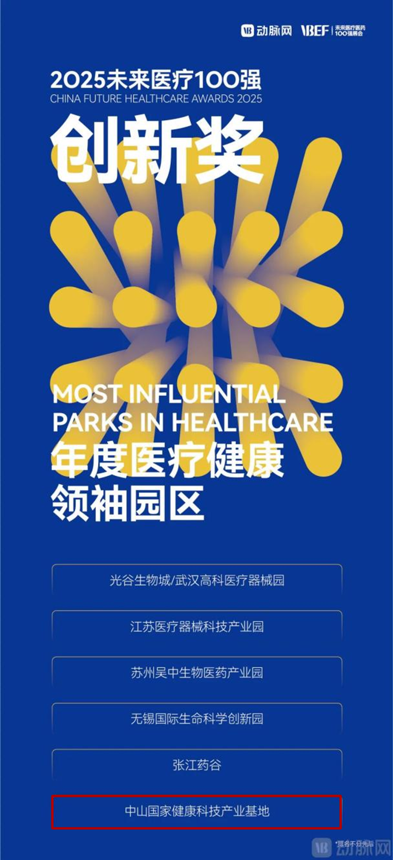創(chuàng)立于2015年的未來醫(yī)療100強榜單是由VB100、動脈網(wǎng)、蛋殼研究院推出的國內(nèi)第一個針對非上市企業(yè)的創(chuàng)新醫(yī)療領(lǐng)域榜單,致力于發(fā)現(xiàn)和推動中國醫(yī)療健康產(chǎn)業(yè)的創(chuàng)新變革。其中,“年度醫(yī)療健康領(lǐng)袖園區(qū)”評選維度為綜合影響力、服務(wù)生態(tài)構(gòu)建能力、持續(xù)創(chuàng)新能力,要求入選產(chǎn)業(yè)園滿足以下要求: