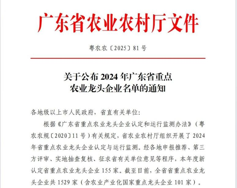 近日,廣東省農(nóng)業(yè)農(nóng)村廳正式公布2024年廣東省重點(diǎn)農(nóng)業(yè)龍頭企業(yè)名單,健康基地園區(qū)企業(yè)廣東民昇食品有限公司(下稱:民昇食品)成功入選。