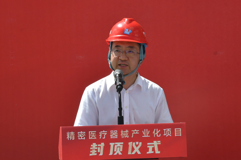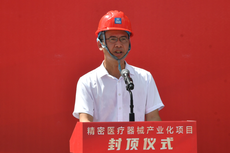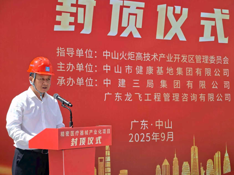 區(qū)黨工委委員、管委會(huì)副主任鐘劍在致辭中表示,精密醫(yī)療器械產(chǎn)業(yè)化項(xiàng)目是火炬高新區(qū)推動(dòng)“三舊”改造和產(chǎn)業(yè)升級(jí)的標(biāo)桿項(xiàng)目。從開(kāi)工到封頂用時(shí)一年,充分展現(xiàn)出“火炬速度”和“中山效率”,體現(xiàn)了健康基地集團(tuán)作為國(guó)企的擔(dān)當(dāng)。該項(xiàng)目高度契合國(guó)家與大灣區(qū)產(chǎn)業(yè)戰(zhàn)略方向,與中山市打造生物醫(yī)藥與健康支柱產(chǎn)業(yè)的部署同頻共振,依托健康基地集團(tuán)專(zhuān)業(yè)的運(yùn)營(yíng)基礎(chǔ),將有力補(bǔ)強(qiáng)我區(qū)生物醫(yī)藥產(chǎn)業(yè)鏈、提升科創(chuàng)能級(jí)。他希望各方以“快、好、省、廉”為標(biāo)準(zhǔn),牢牢守住質(zhì)量安全底線(xiàn),全力推動(dòng)項(xiàng)目早竣工、早投產(chǎn)、早見(jiàn)效;鹁娓咝聟^(qū)將持續(xù)優(yōu)化營(yíng)商環(huán)境,全力做好服務(wù),支持項(xiàng)目早日建成達(dá)產(chǎn)、打造產(chǎn)業(yè)新高地,為中山高質(zhì)量發(fā)展貢獻(xiàn)更大力量。
